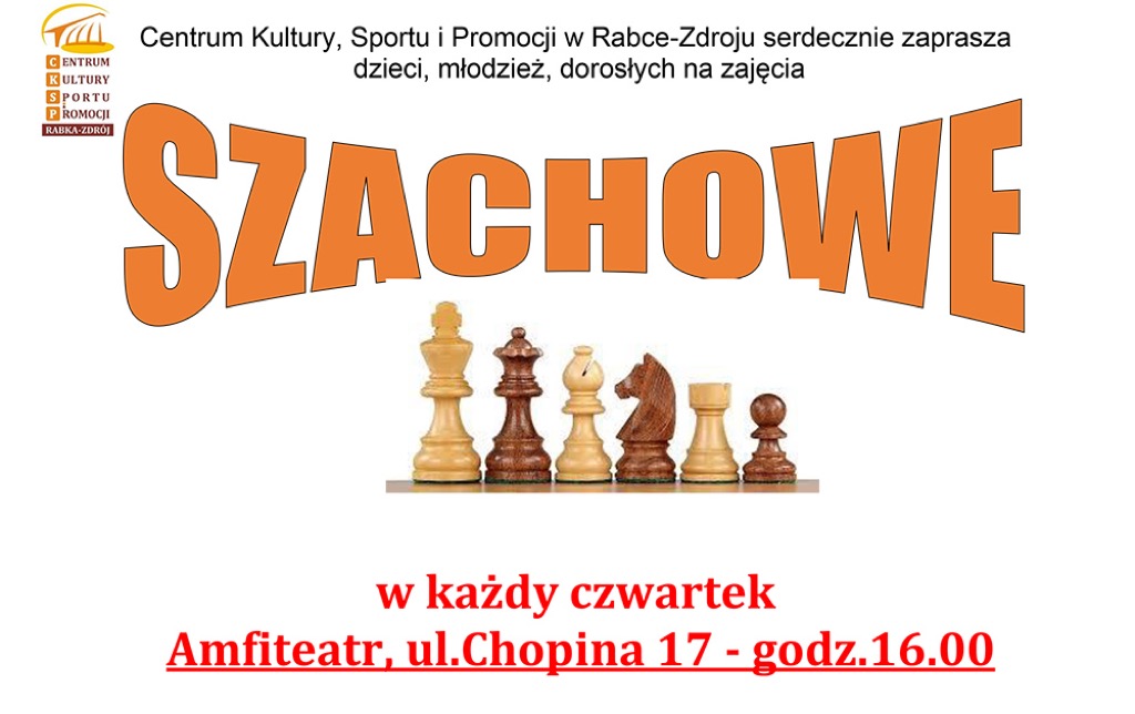 Spotkania szachistów odbywać się będą w każdy czwartek o godz. 16.00 w Sali prób w amfiteatrze przy ul. Chopina 17.